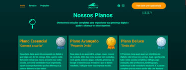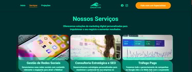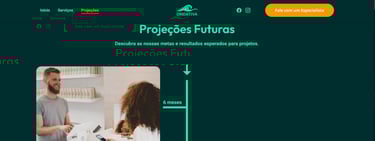 A identidade visual é moderna e simples, com fundo escuro que destaca bem as cores verde e laranja, passando leveza e energia. As letras em negrito deixam tudo claro e fácil de ler, e os ícones dão um toque extra sem poluir o visual. No fim, o resultado é uma comunicação direta, bonita e confiável, que chama a atenção de um jeito estratégico.